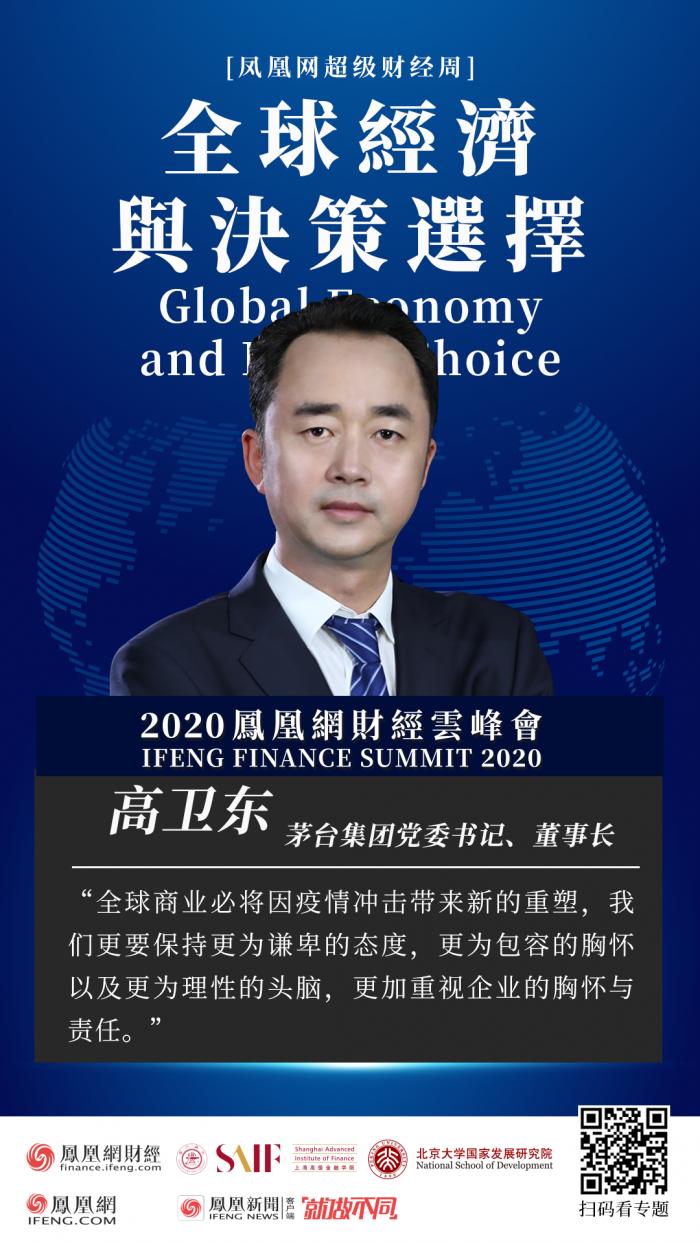 5月11日上午11时32分,茅台集团党委书记、董事长高卫东在线出席“2020凤凰网财经云峰会”时演讲表示:“过去两个月来,我们最重要的责任是尽快的复工达产,稳就业、稳增长、贡献新的更多的税收。”