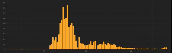 (韩国每日新增病例走势 来源:约翰霍普金斯大学)