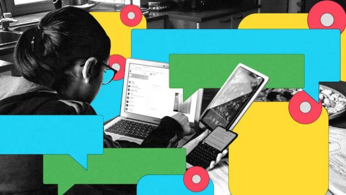 在学校的时候,我们通常早上会收到一通信息,类似生日祝福和新闻之类,还有关于实地考察、慈善活动或其它特别的活动。现在,我们一整天都会收到来自各班级的各种信息。除了主课,还有艺术课、音乐课、体育课。当我们需要上网做作业或视频会议时,都会收到各种消息提醒。校长和副校长也会给我们上课。但整个上课过程我都会收到各种信息。