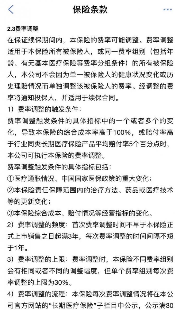《通知》明确了保险公司开发销售费率可调的长期医疗保险产品,应当制定长期医疗保险费率调整办法,明确费率调整的触发条件、内部决策机制和工作流程。费率调整的触发条件应当清晰、客观,具体可包括实际赔付情况、医疗通胀情况、国家医保政策的重大变化等。