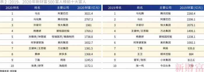 新财富500富人榜:首富马云财富一年增加800亿元,黄峥首入前十