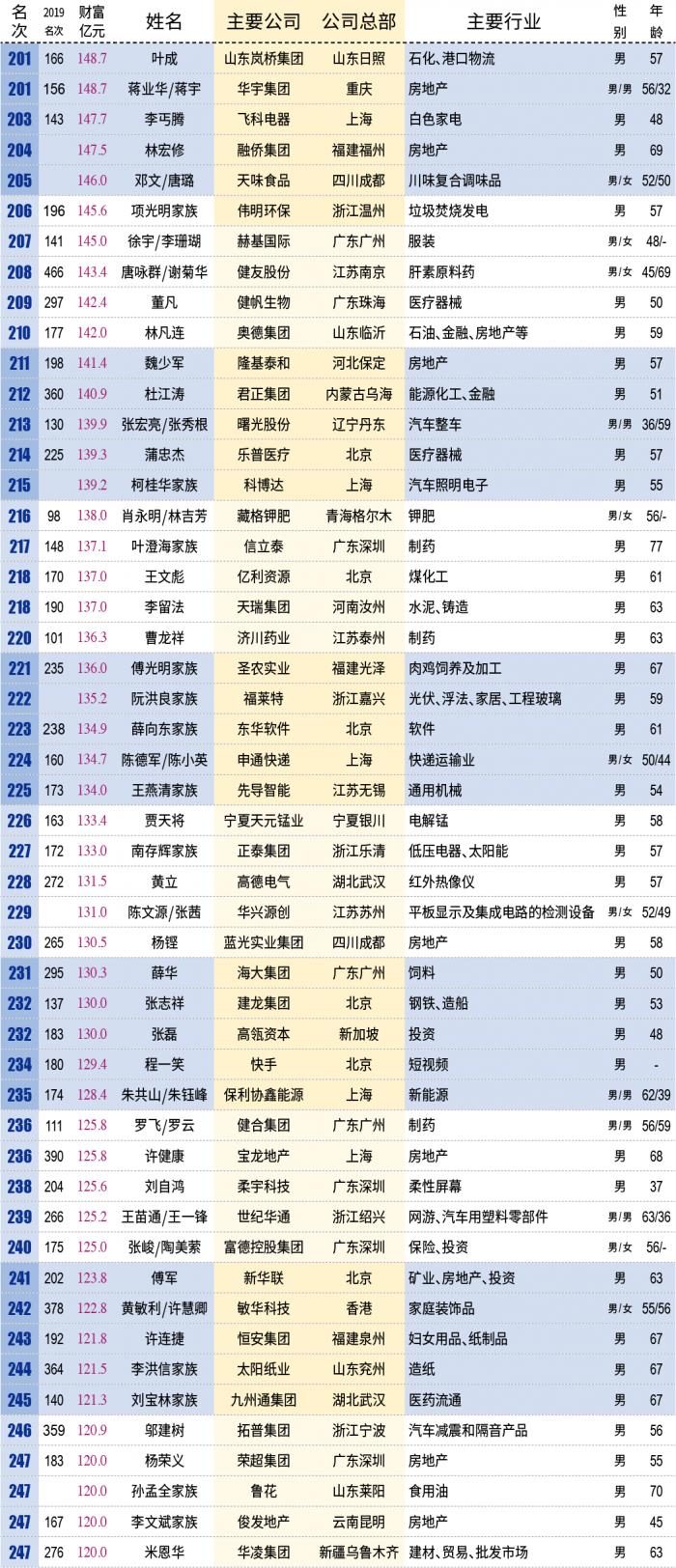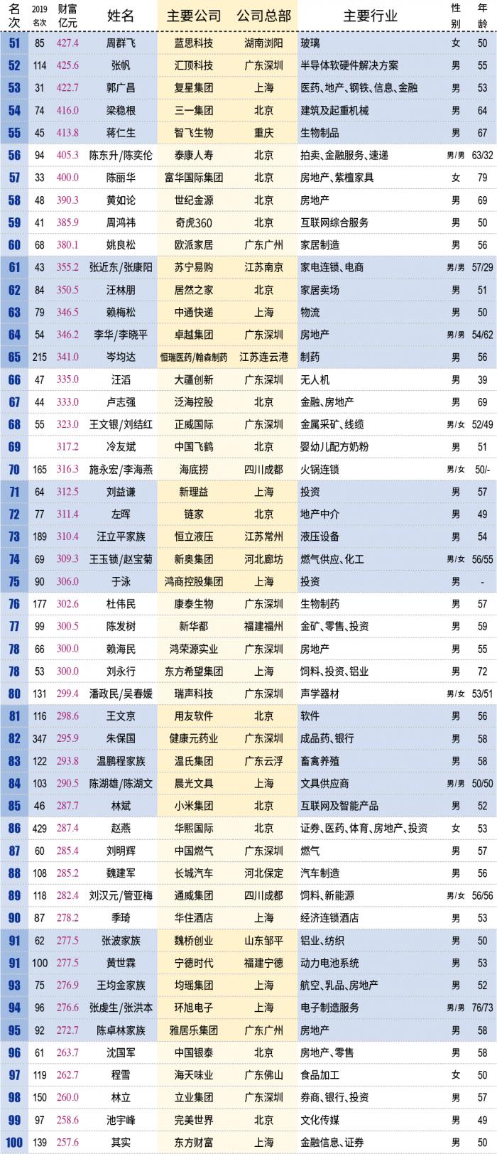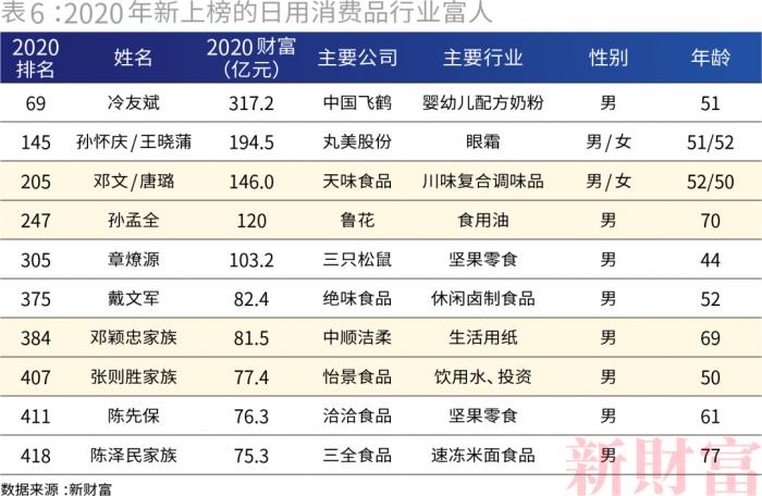而日用消费品行业在今年榜单上更加出彩,有10位富人新上榜,较去年则是在榜单上净增加了5个席位。