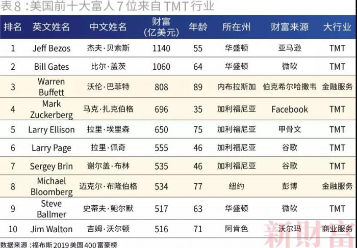 以美国前十大富人为例,其前十大富豪里,有7位来自TMT行业(表8)。