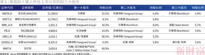 第四,我们再来观察一下美国前十大富人所在上市公司的股东情况(表9)。你会更加吃惊。
