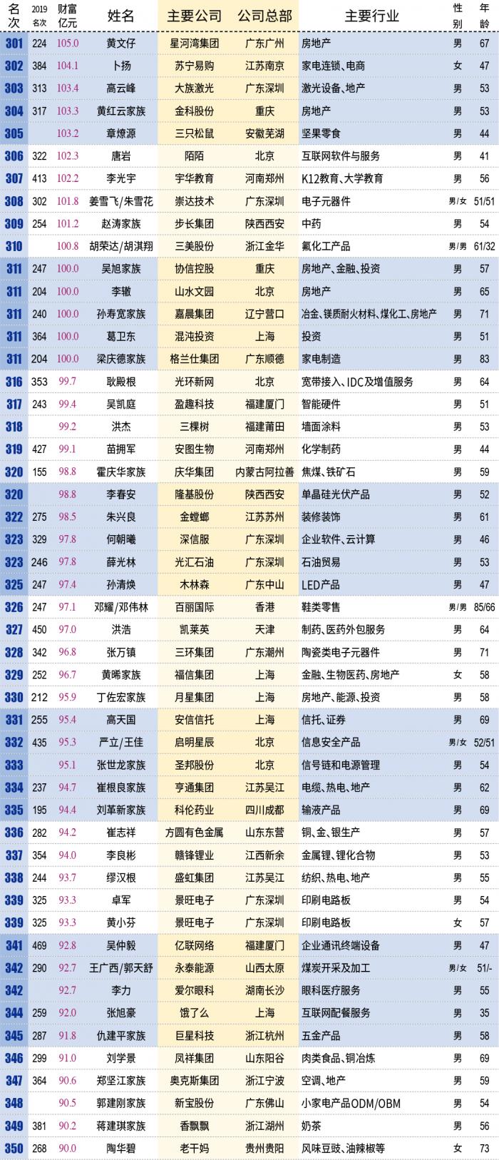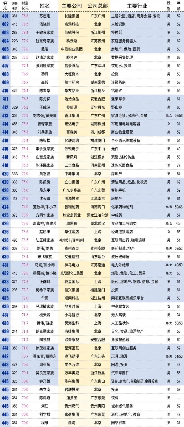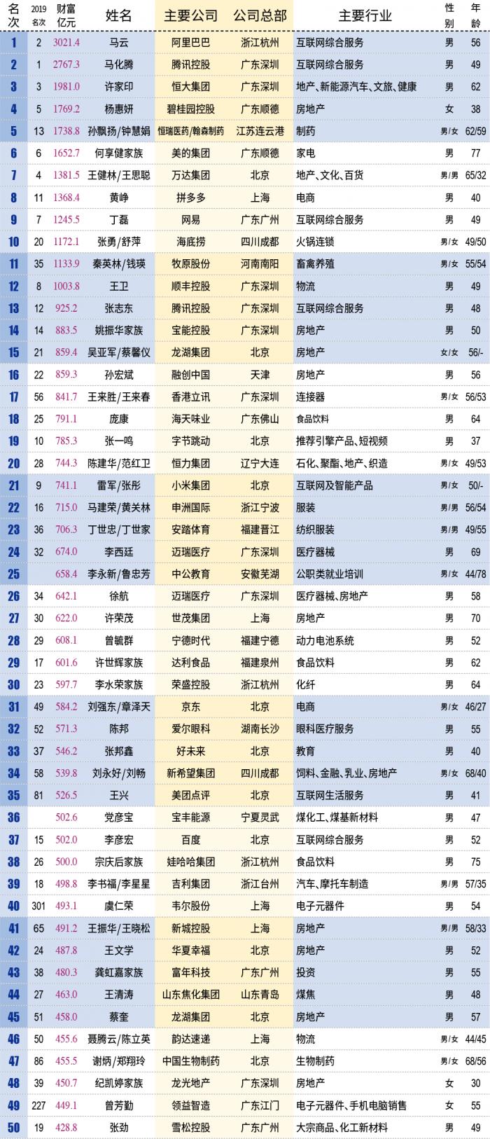 2019年是中国顶级富人的miracle year(奇迹之年)。惨淡2018之后,迎来了惊喜连连2019。