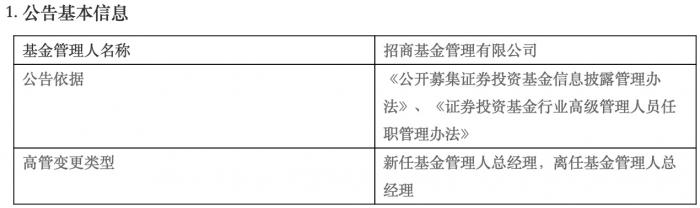 公告中说明,招商基金此次的高级管理人员变更,已经招商基金管理有限公司第六届董事会2020年第一次会议审议通过,并按照规定向监管机构报备。