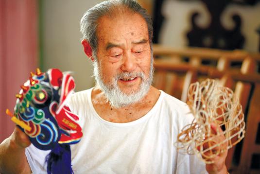 聂方俊是凤凰彩扎的国家级传承人,今年80岁了。他出生于一个彩扎的世家,他和父亲学艺,父亲又是和祖父学的。至于他们家族多少代人做彩扎,他就不知道了。