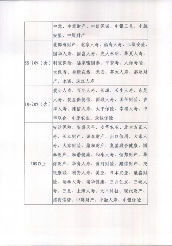 差异率在10%-20%之间的保险公司共15家,具体是:爱心人寿、百年人寿、长城、长生人寿、东吴人寿、复星保德信、国联人寿、国任财险、吉祥人寿、建信人寿、太平保险、幸福人寿、中华联合、中原农业、众诚保险。