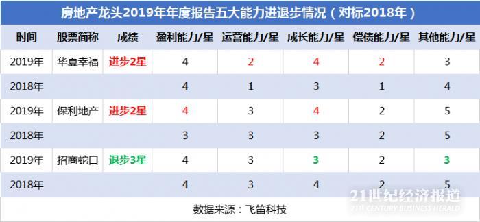 而招商蛇口则为房地产龙头业绩总星级中唯一一家退步公司,主要体现在成长能力和其他能力的退步上,具体体现在净资产收益率和销售毛利率排名的下降,2019年招商蛇口净资产收益率和销售毛利率排名由14名、43名分别下降至20、61名,综合退步最大。