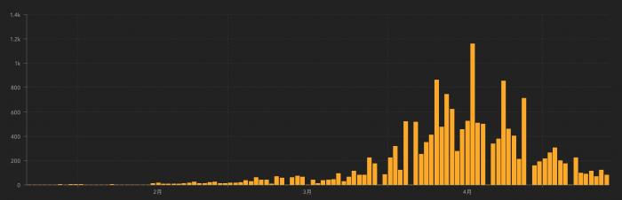 (日本新冠日新增走势 来源:约翰霍普金斯大学)
