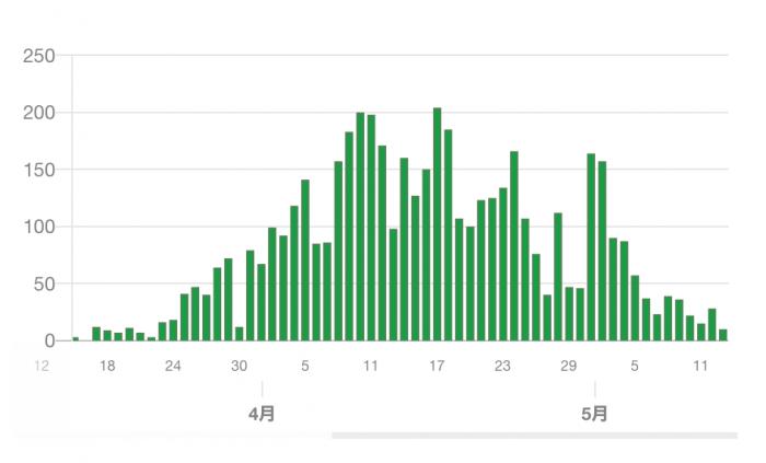 作为日本疫情“震中”的东京,也呈现出了感染下降之势。5月14日,东京新增确诊30例,为连续12天日新增低于100例,截至目前,累计确诊已突破5000例。但东京都知事小池百合子今日表示,请大家牢记东京还未解除紧急状态。