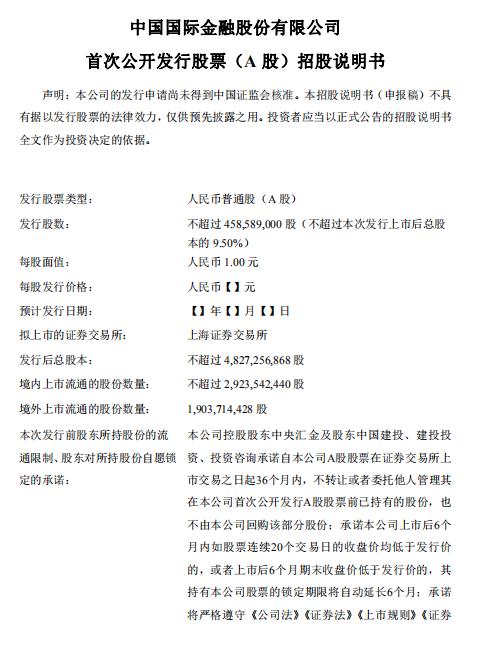 证监会披露中国国际金融股份有限公司首次公开发行股票招股说明书,拟发行不超过4.59亿股,募资将全部用于增加公司资本金、补充公司营运资金、支持公司境内外业务发展。