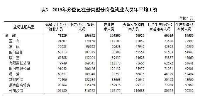 分登记注册类型看,年平均工资最高的是外商投资企业106604元,为全国平均水平的1.18倍。年平均工资最低的是集体单位62612元,为全国平均水平的69%。