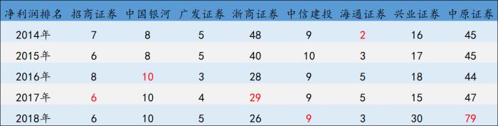 作为头部券商的海通证券,2014年从证监会引入监管领导翟秋平作为公司总经理,但此后,这家行业龙头券商地位一路下滑。2014年其净利润尚排在行业第2位,此后一度连续两年(2016年和2017年)跌落至行业第5。