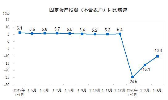 1-4月份,全国固定资产投资(不含农户)136824亿元,同比下降10.3%,降幅比1-3月份收窄5.8个百分点;4月份环比增长6.19%。
