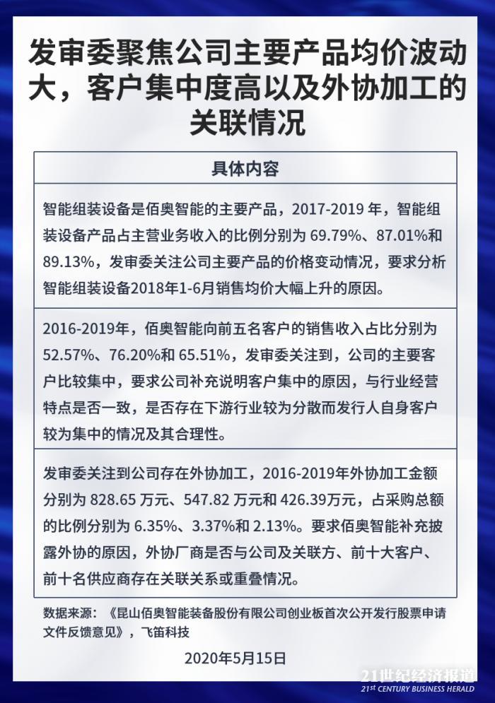 发审委关注的问题中,公司主要产品均价波动大,客户集中度高以及外协加工的关联情况值得注意。