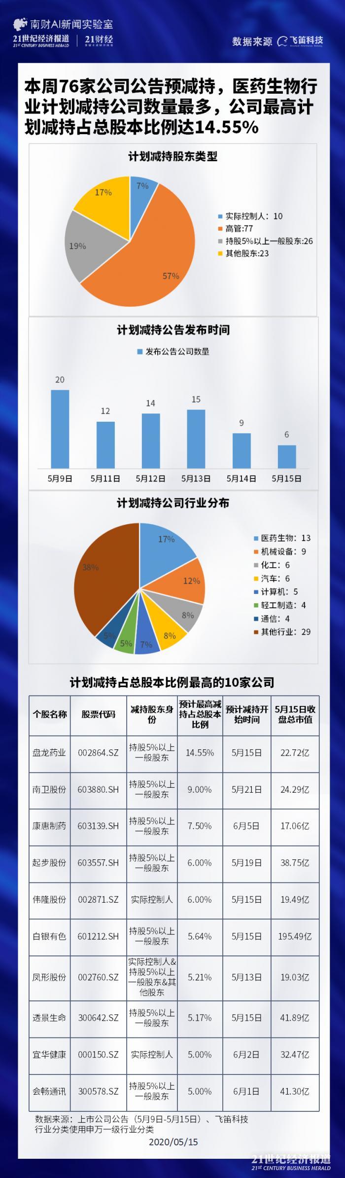 风口观察|本周76家公司预减持:医药生物公司占17%,九鼎系不设限减持盘龙药业