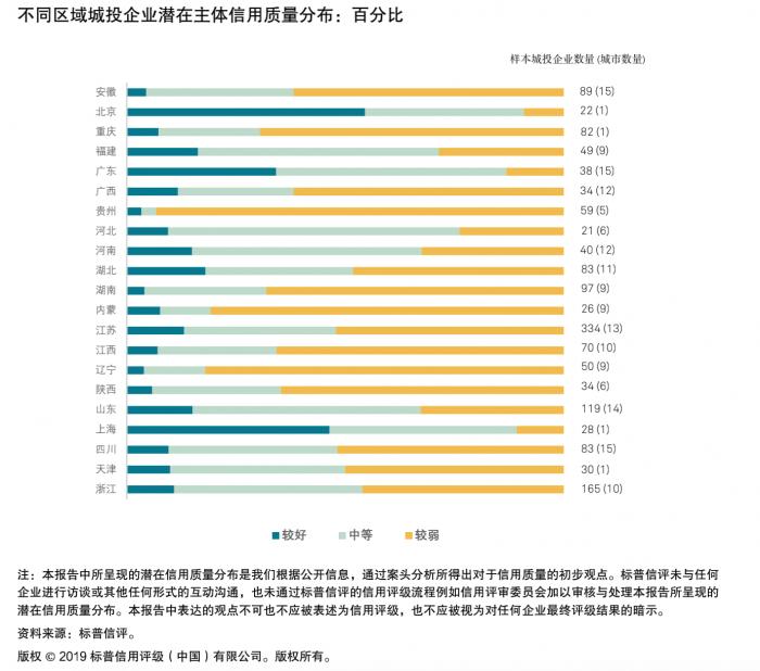 2019年底,标普信评对中国近1700 家城投企业进行案头分析,样本数量接近整个债券市场发债城投企业总量的80%,这些样本企业覆盖了30多个省级行政区的200多个地级市。