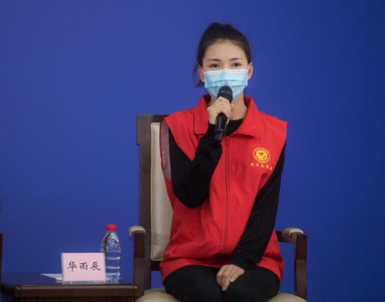 2020年2月23日,国务院新闻办公室在湖北武汉举行国务院新闻办记者见面会,邀请在武汉疫情防控一线的普通工作者讲述他们团结奋战的故事,并回答记者提问。图为武汉市青山区钢花小学音乐教师华雨辰在记者会上。新华社记者