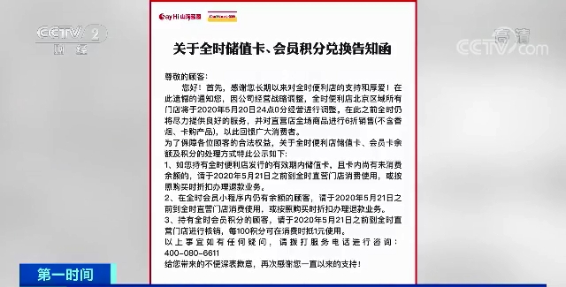 央视财经记者在5月13日来到北京东城区的一家全时便利店门口,看到这家门店已经是关门停业的状态,便利店的玻璃门上还有5月10日已消毒的字样,说明至少在5月10日之前,这家店还在营业。除此之外,记者没有看到任何对此次闭店情况的说明。