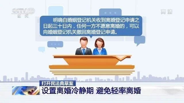 最高人民法院民一庭法官王丹介绍,离婚冷静期在司法实践中已经进行过探索,取得了不错的效果。王丹表示,我们在审判实践中发现,目前离婚中有一部分是冲动型离婚。如果说法院一判了之的话,可能不只是双方解除婚姻关系,对于子女的抚养,对于老人的赡养可能都会存在很大的影响。为减少轻率离婚、冲动离婚,维护家庭稳定,民法典草案婚姻家庭编此次拟将“离婚冷静期”引入。