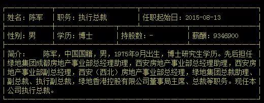 绿地控股的现任高管中,执行总裁确为陈军。履历显示,陈军曾西安(西北)房地产事业部总经理,绿地集团总裁助理、副总裁、执行副总裁,绿地香港控股有限公司董事局主席、总裁等职务。