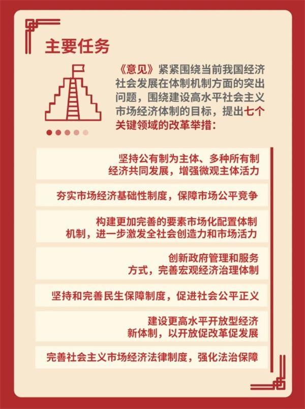 《意见》紧紧围绕当前我国经济社会发展在体制机制方面的突出问题,围绕建设高水平社会主义市场经济体制的目标,提出七个关键领域的改革举措——