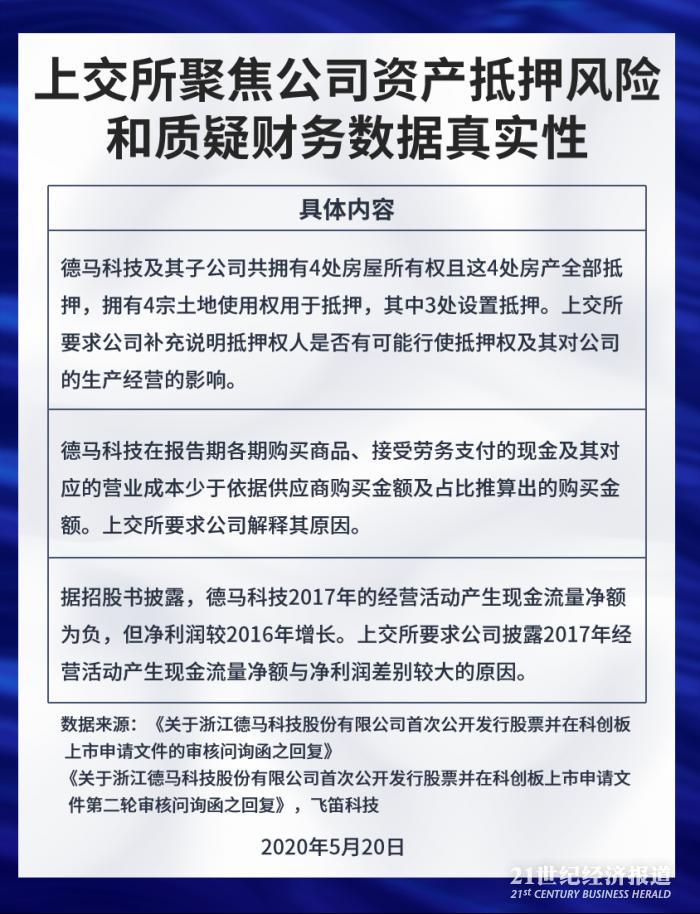 首先是资产抵押风险,上交所关注到,德马科技及其子公司共拥有4处房屋所有权且这4处房产全部抵押,拥有4宗土地使用权用于抵押,其中3处设置抵押。上交所要求公司补充说明抵押权人是否有可能行使抵押权及其对公司的生产经营的影响。