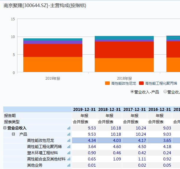 历史数据显示,南京聚隆主要收入来自于改性尼龙与工程化聚丙烯。