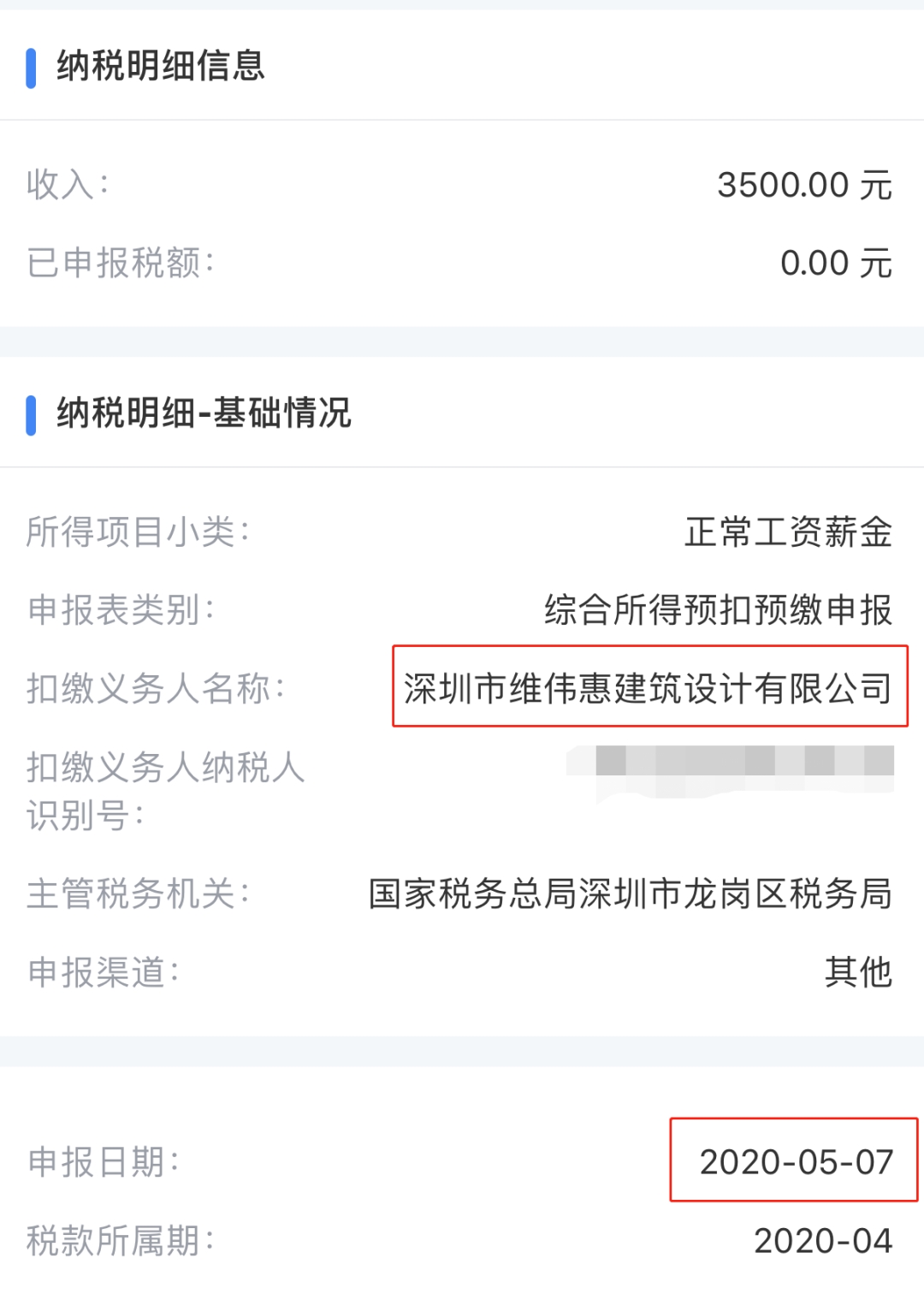 5月4日,在北京读书的张起在个税APP上进行了申诉。5月13日,处理结果显示为:税务机关无法与该单位取得联系,为保护您的权益,我们将暂时删除该记录。她发现,就在申诉后的5月7号,该公司又给自己申报了一笔“工资”。