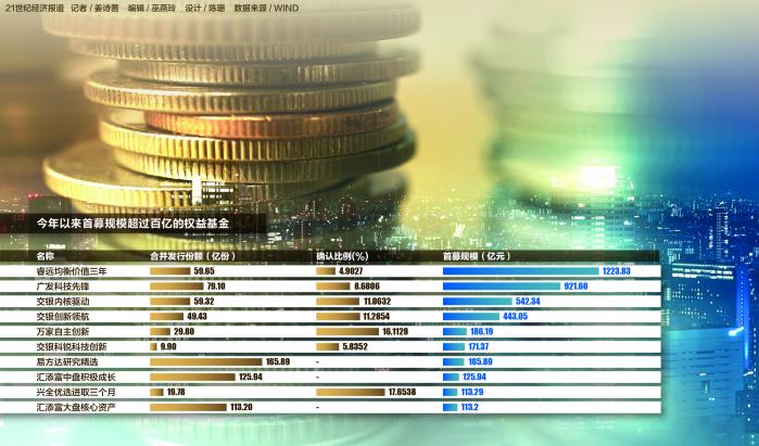考虑到多只基金设置了募集规模上限,按这个数据统计,还有广发科技先锋、睿远均衡价值三年、交银内核驱动、交银创新领航、万家自主创新、兴全优选进取三个月、交银科锐科技创新共7只主动权益产品首募规模超过100亿。