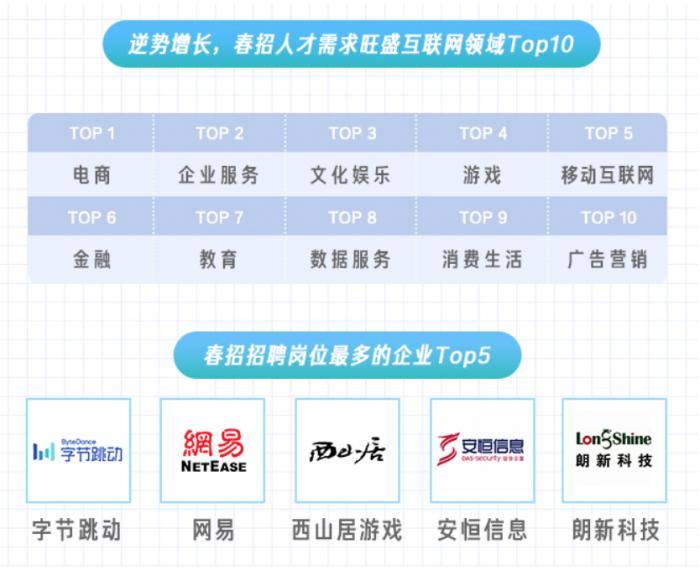 在疫情“宅经济”大背景下,以电商、企服、文娱、游戏为代表的10大互联网领域逆势增长。新基建则加速了传统行的互联网化,也为毕业生就业提供了新的就业方向和岗位选择。