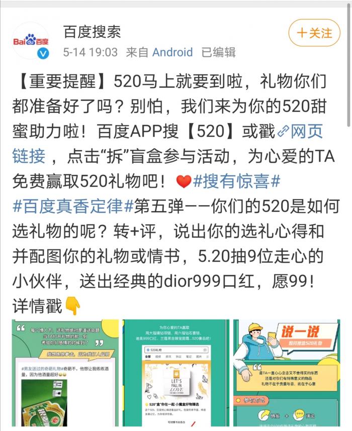 趁着520的东风,盲盒经济在线上再次掀起一阵新热潮。近日,京东超市推出1元抢惊喜盲盒的活动,盲盒礼品包含日用、美妆、首饰等多种类型。与此同时,天猫联合各大盲盒IP推出线上潮玩展,百度也推出“520奢品盲盒等你拆”活动,一时间,线上纷纷掀起抢盲盒热潮。一元抢、免费拆等盲盒新玩法也为疫情影响下的消费者增加一些惊喜与抚慰。