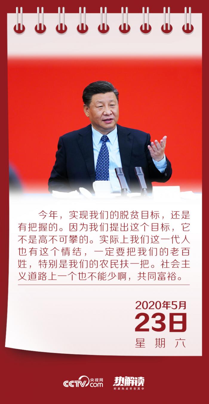 在听取大家发言后,习近平有感而发:“今年,实现我们的脱贫目标,还是有把握的。因为我们提出这个目标,它不是高不可攀的。实际上我们这一代人也有这个情结,一定要把我们的老百姓,特别是我们的农民扶一把。社会主义道路上一个也不能少啊,共同富裕。”