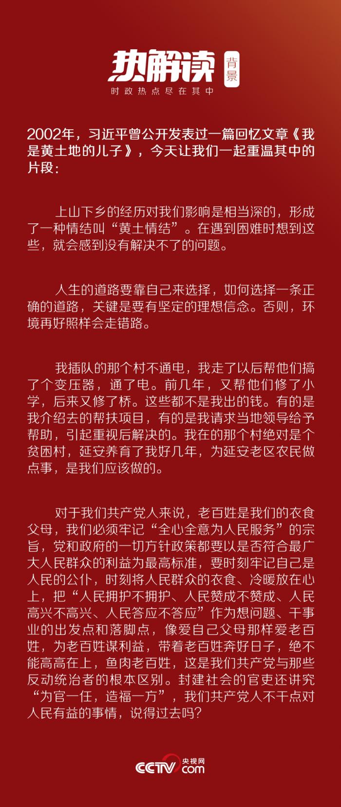 早在十几年前,习近平就曾在《我是黄土地的儿子》一文中提到过“情结”二字。他说,上山下乡的经历对我们影响是相当深的,形成了一种情结叫“黄土情结”。