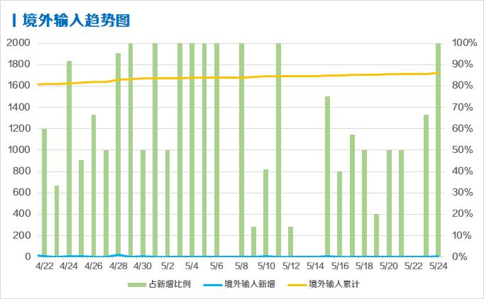 此外,5月24日,港澳台地区均零新增。包含港澳台,全国有32个省区市零新增,21个省区市清零。