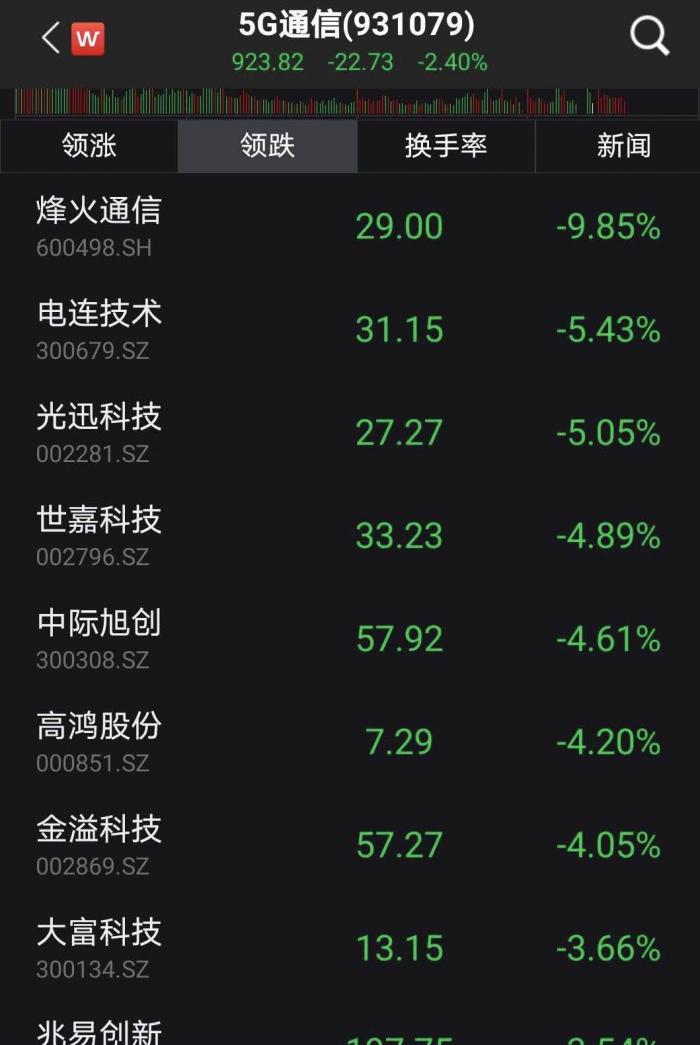 再次,5G板块25日整体表现低迷,多只个股个股出现4%以上的跌幅,烽火通信又叠加了被纳入“实体清单”的影响,领跌5G板块。