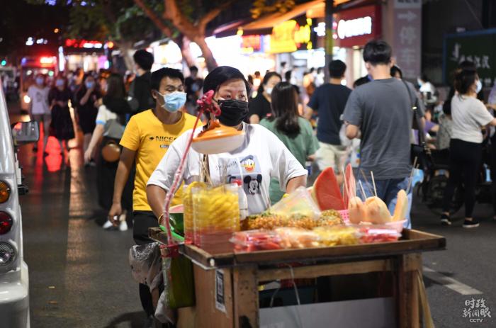△这是22日晚的汉口商业街,逛街、吃宵夜的市民开始增多,城市“夜经济”在复苏。