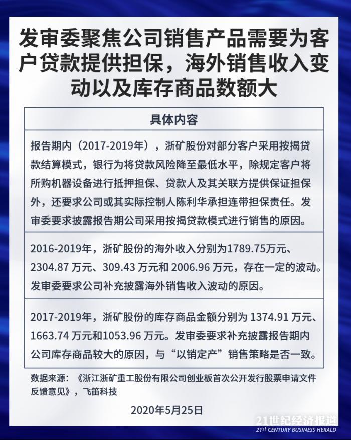 发审委聚焦公司销售产品需要为客户贷款提供担保,海外销售收入变动以及库存商品数额大