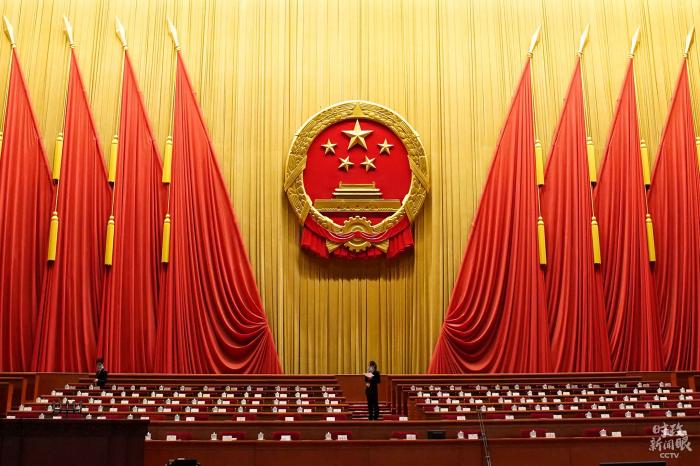 △全国人大会议第二次全体会开始前的会场。(总台央广记者潘毅、央视记者彭汉明拍摄)