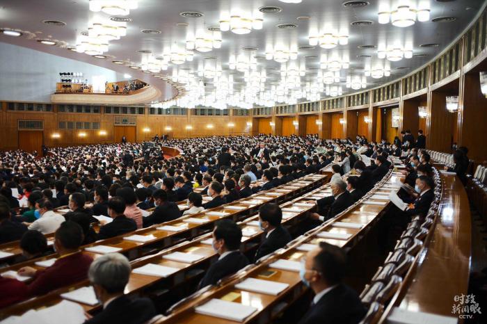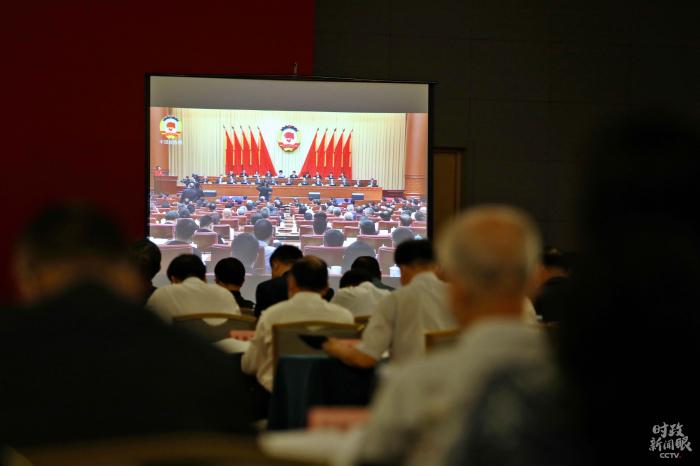 △代表们听取和审议全国人大常委会工作报告。(总台央视记者彭汉明拍摄)