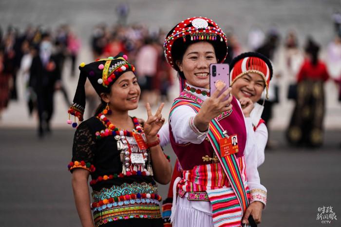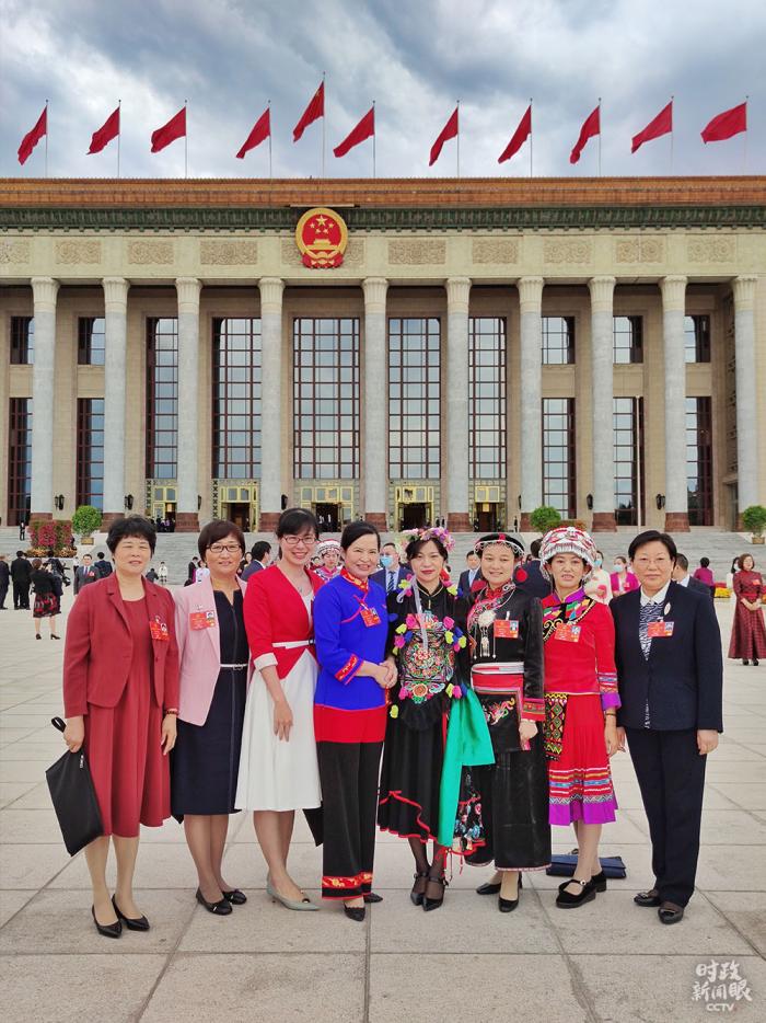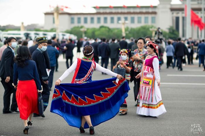 △代表们陆续来到大会堂,参加全国人大会议第二次全体会。(总台国广记者李晋拍摄)