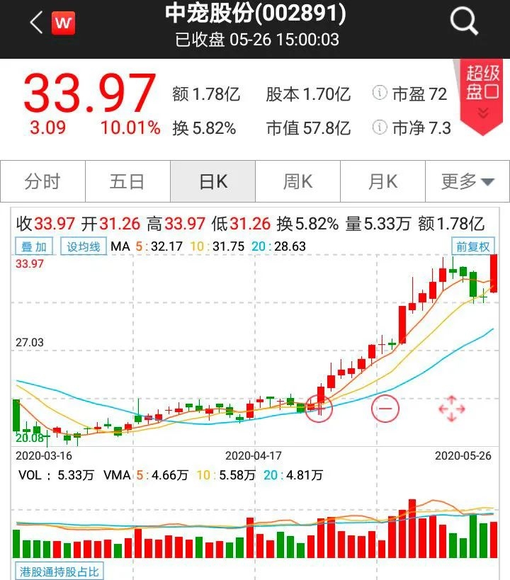 5月26日早盘,宠物概念股龙头中宠股份冲上涨停板,报33.97元,股价创下历史新高。佩蒂股份收涨7.44%,报34.5元。