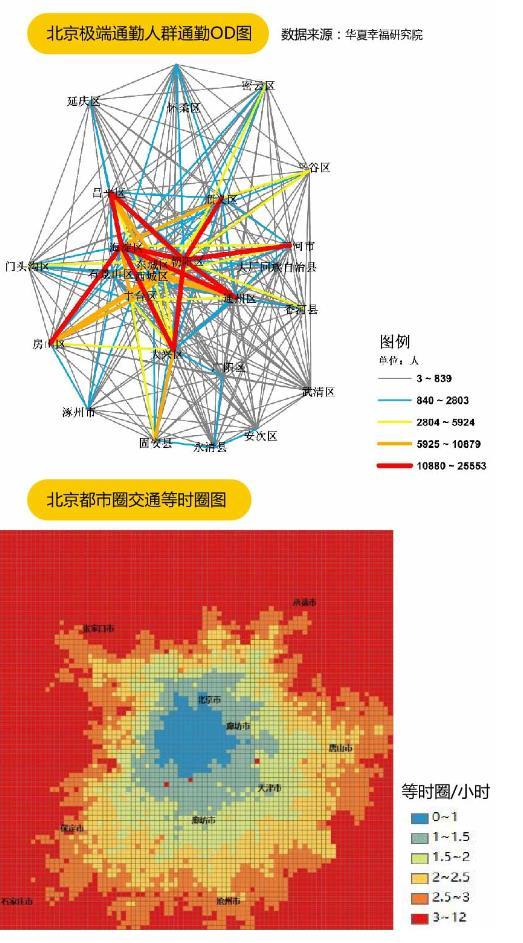 但北京都市圈职住平衡问题在全国最为突出。不仅市域内的通勤时间长,“五环内工作五环外生活已成常态”,而从极限通勤的范围来看,河北的涿州、固安、永清、香河、大厂和三河,以及天津的武清,与北京的通勤也已经十分紧密。但北京与周边北三县地区的“都市圈”的形成,实际上是迫于北京“大城市病”所产生的挤出效应,都市圈联动发展较弱,北京市与周边地区在教育、医疗、住房等公共服务领域有较大的差异。