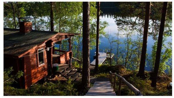 (很多加拿大人会在林中湖边购置木屋,用来小住,休憩身心。)