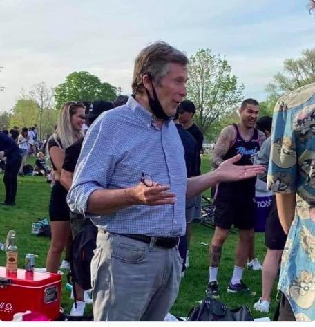 多伦多市中心就更离谱了,昨天Trinity Bellwoods公园聚集了数千人,日光浴、野餐、踢球、扔飞盘,尽情放飞自我。市长John Tory闻讯亲自跑过去跟人谈心,希望大家遵守疫情社交规则,不过自己也没带好头儿——谈话时跟人站得蛮近的不说,口罩也拉了下来。