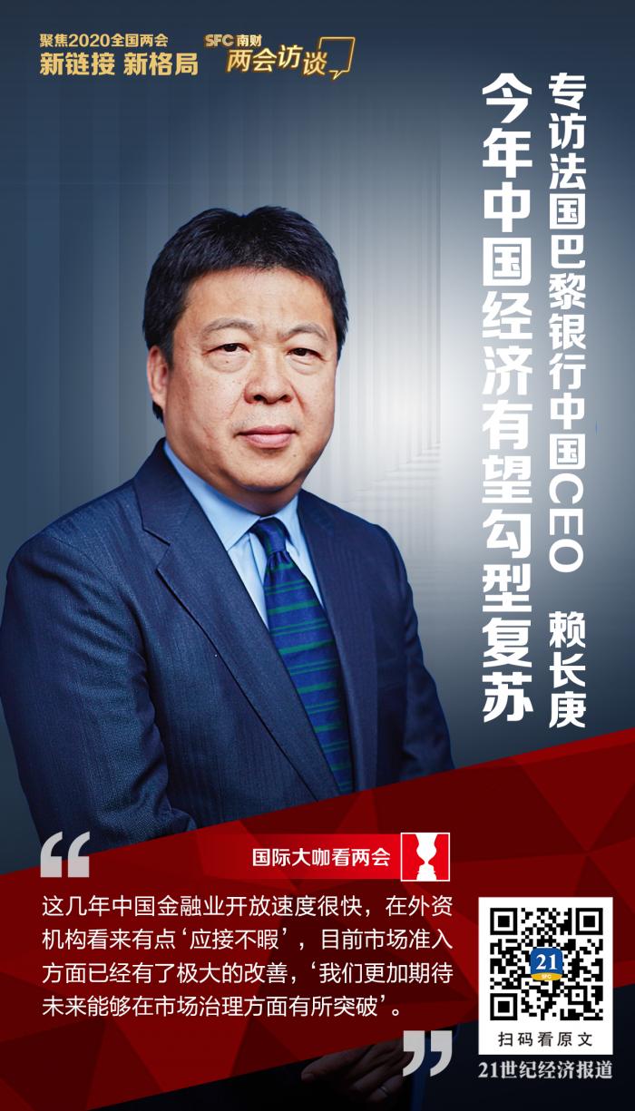 5月25日,21世纪经济报道记者专访了法国巴黎银行中国CEO赖长庚,就新冠肺炎疫情大流行下的国内外经济形势、中国的货币政策、利率市场化改革、金融开放等诸多话题展开了讨论。