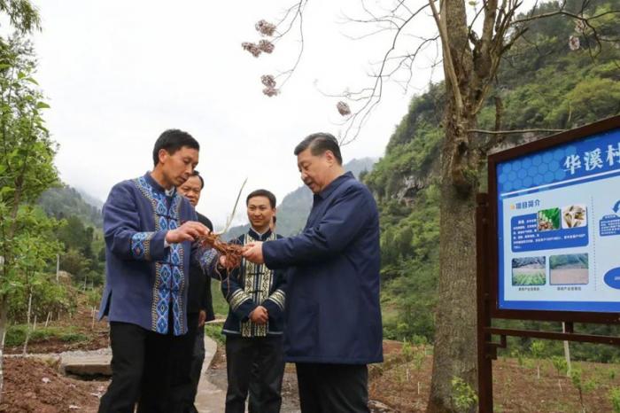 2019年4月15日,习近平在重庆华溪村考察特色经济作物带动村民脱贫的情况。新华社记者 鞠鹏 摄