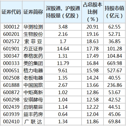 截至5月25日,北向资金持股量占总股本的比例在10%以上的有24只。