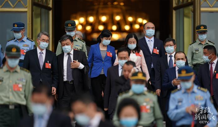 △5月25日,十三届全国人大三次会议第二次全体会议结束后,代表们走出人民大会堂。(总台国广记者李晋拍摄)